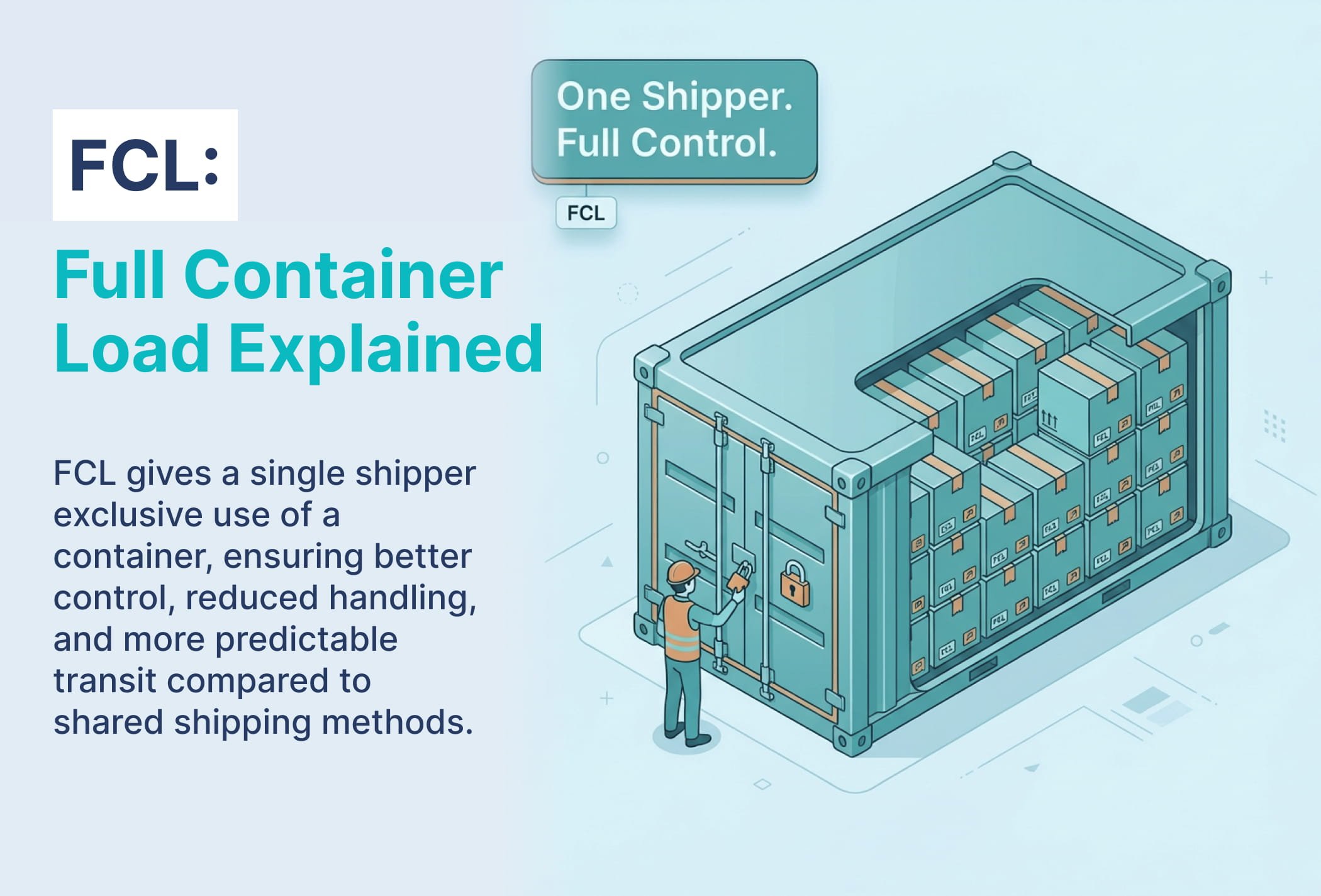 FCL stands for Full Container Load, which means a single shipper uses an entire container exclusively for their goods.